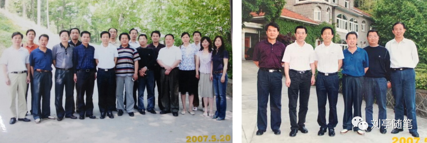 2007年5月,第六届浙江军工老团干联谊活动相聚莫干山,这是部分团友们的合影及刘亭书记和范小宁书记和部分原国防科工办团委委员合影