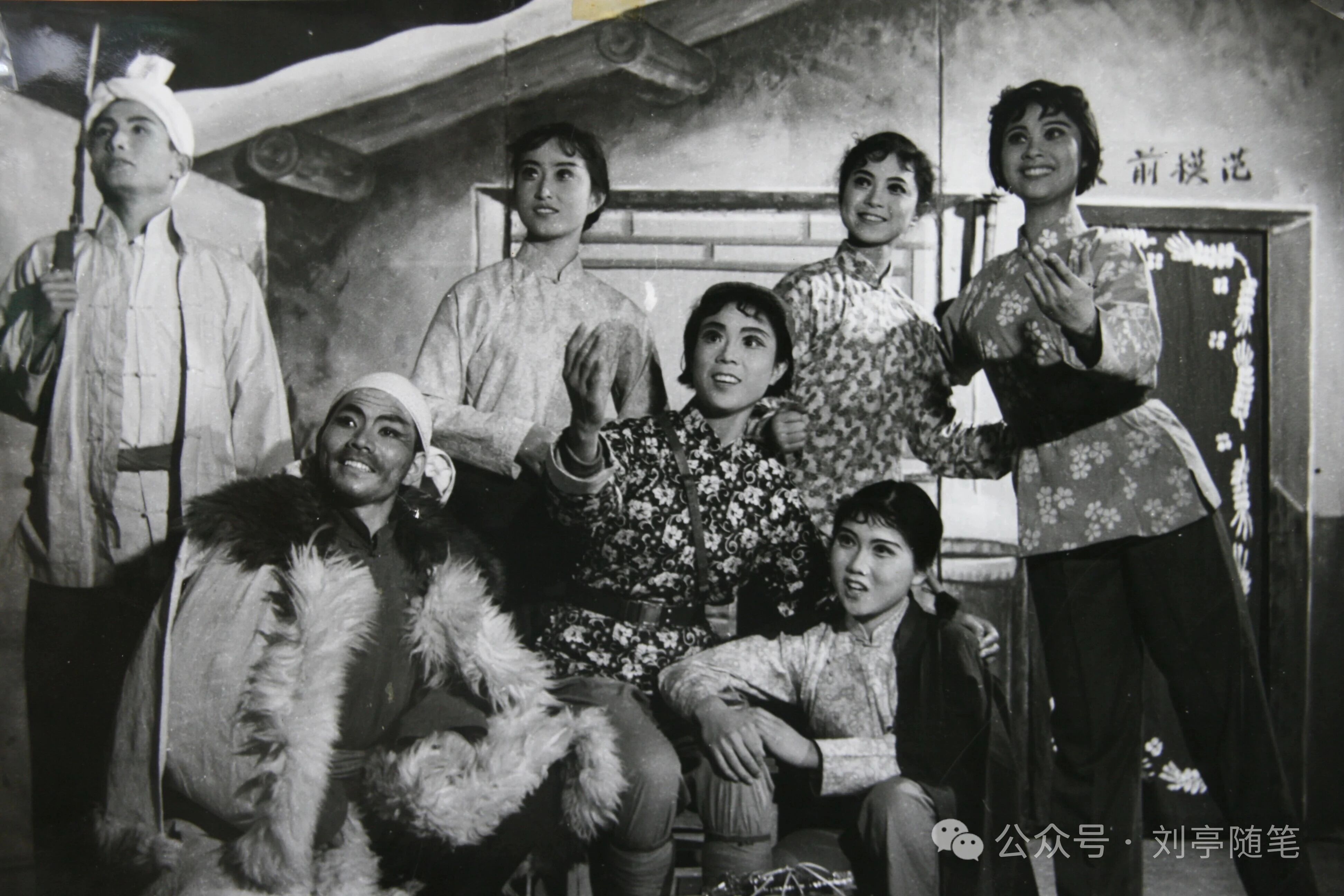 入伍后参演的大型歌剧《刘胡兰》剧照,位于七人中间者